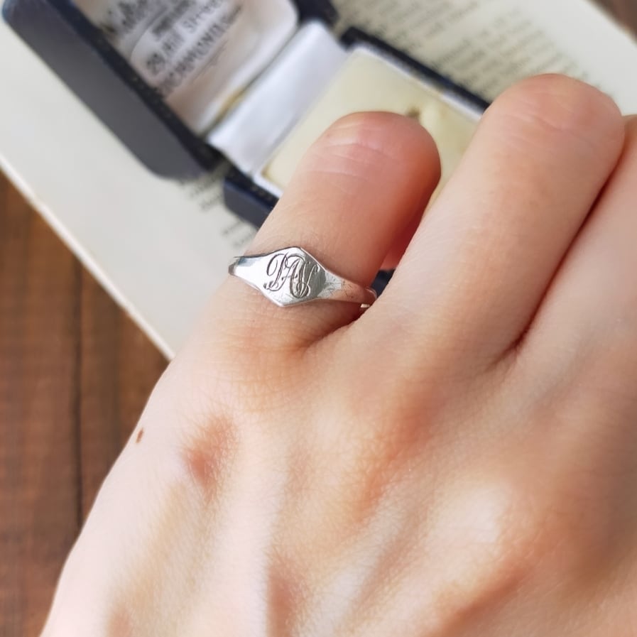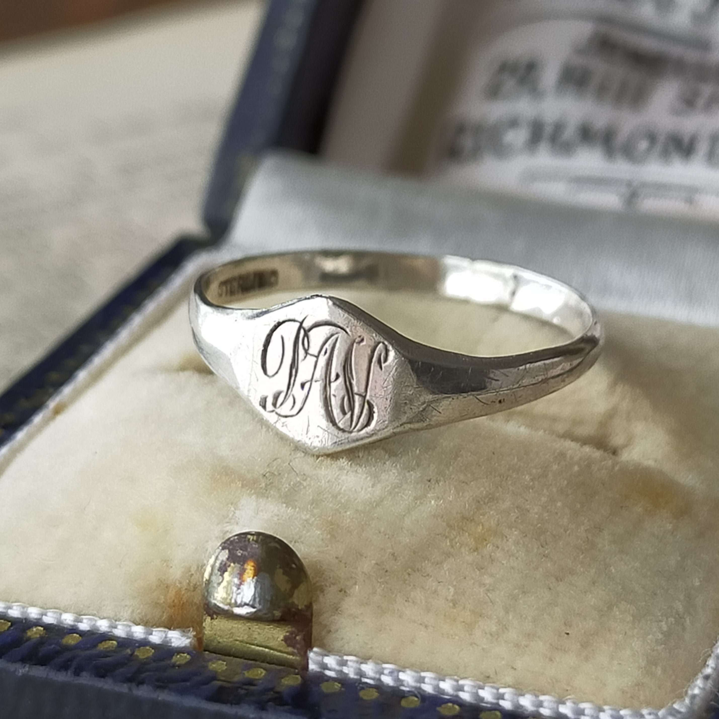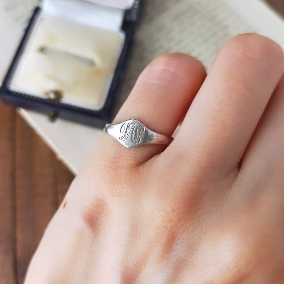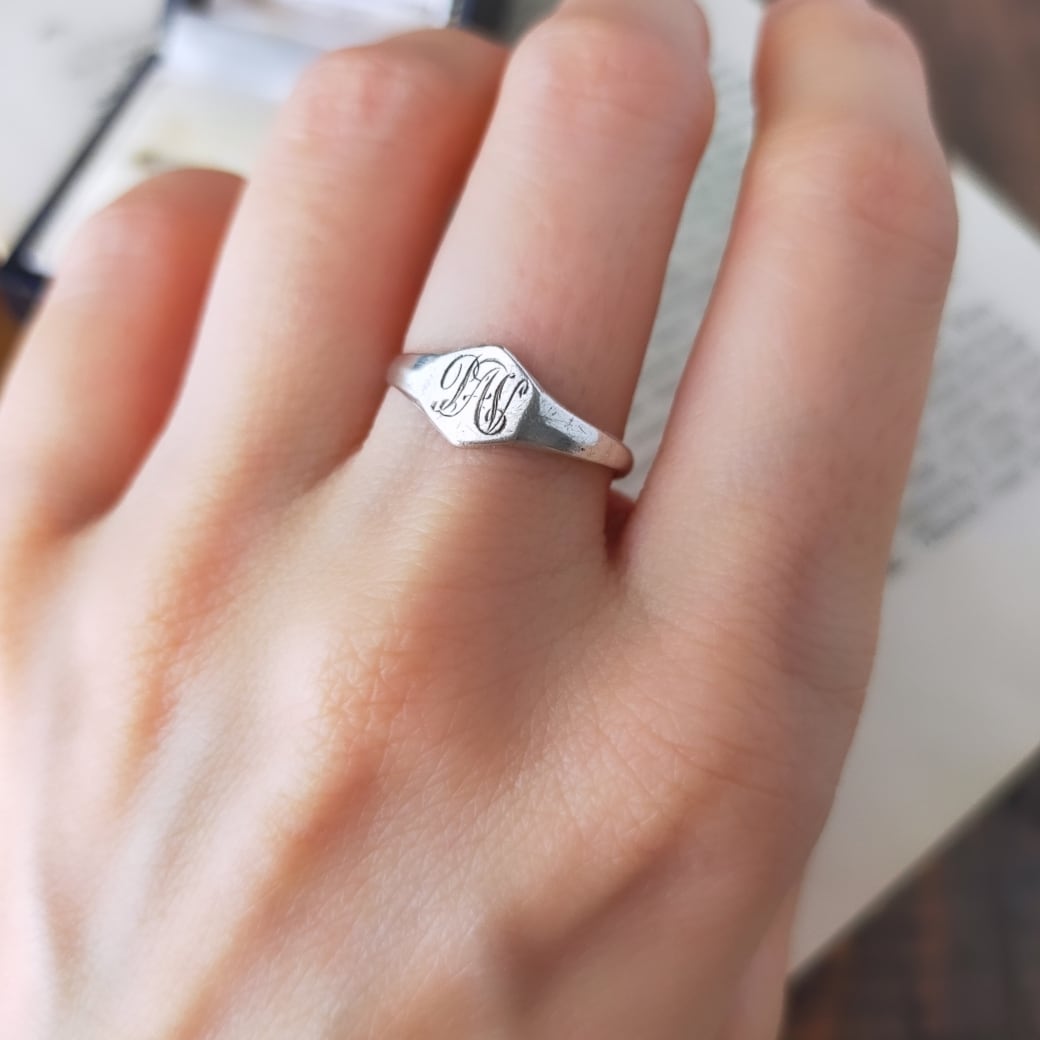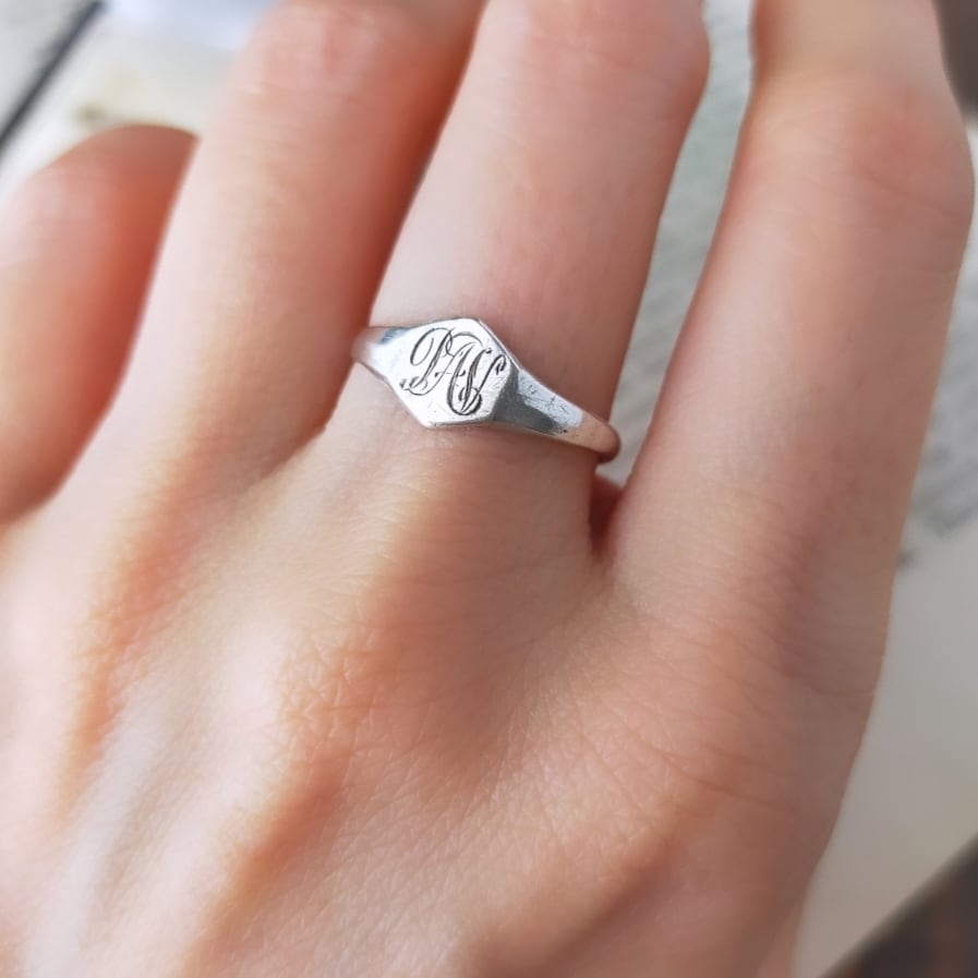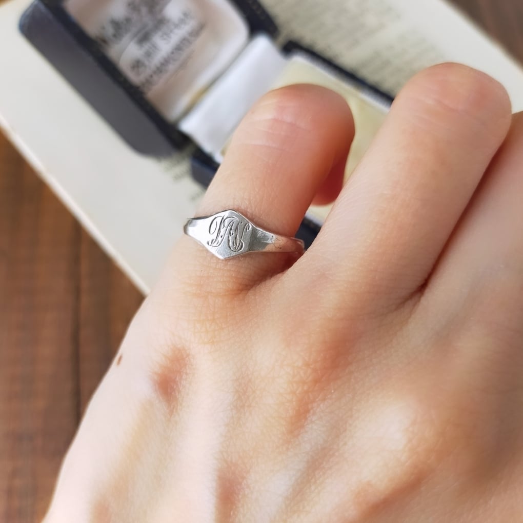アンティーク STERLING シルバー シグネットリング イニシャル ヘキサゴン