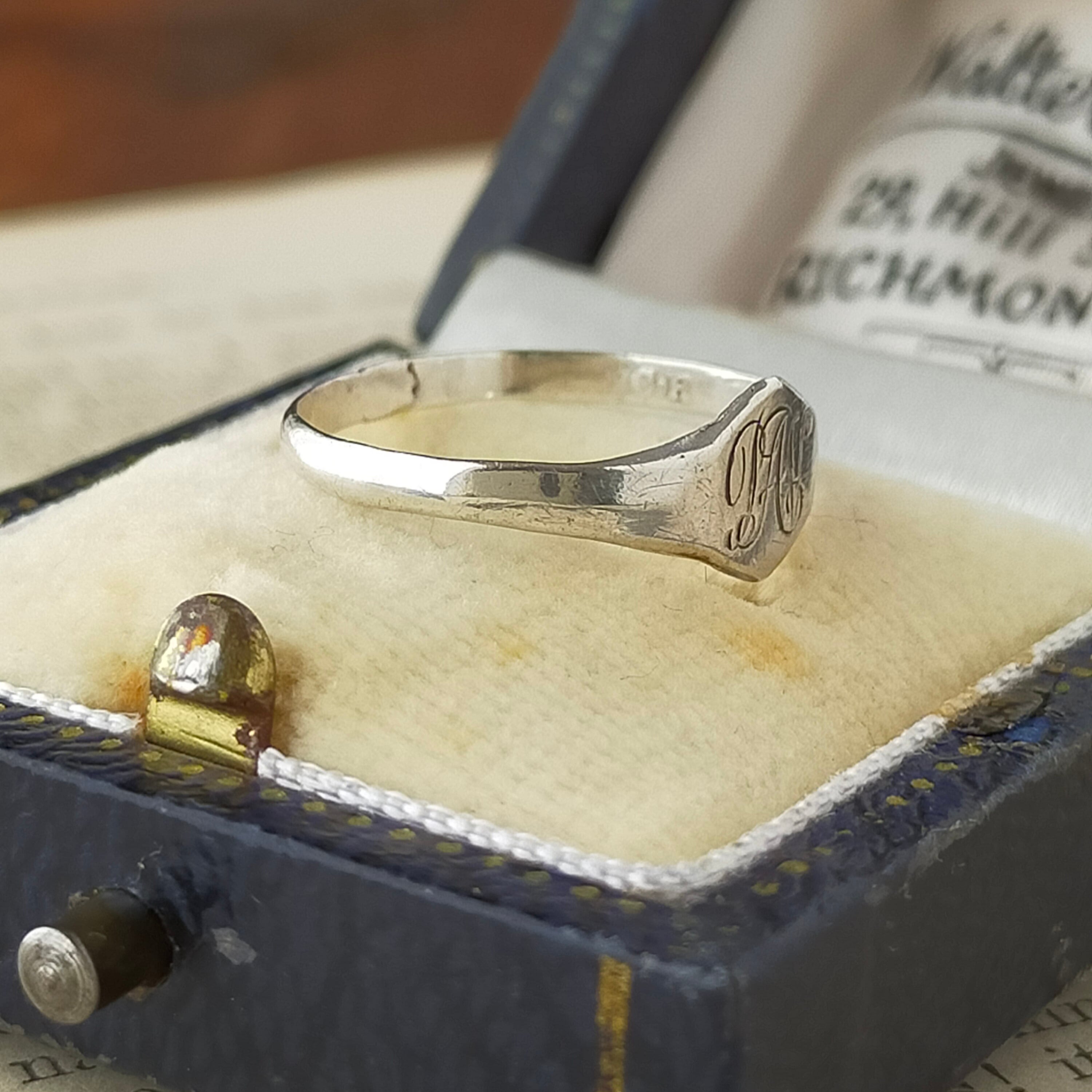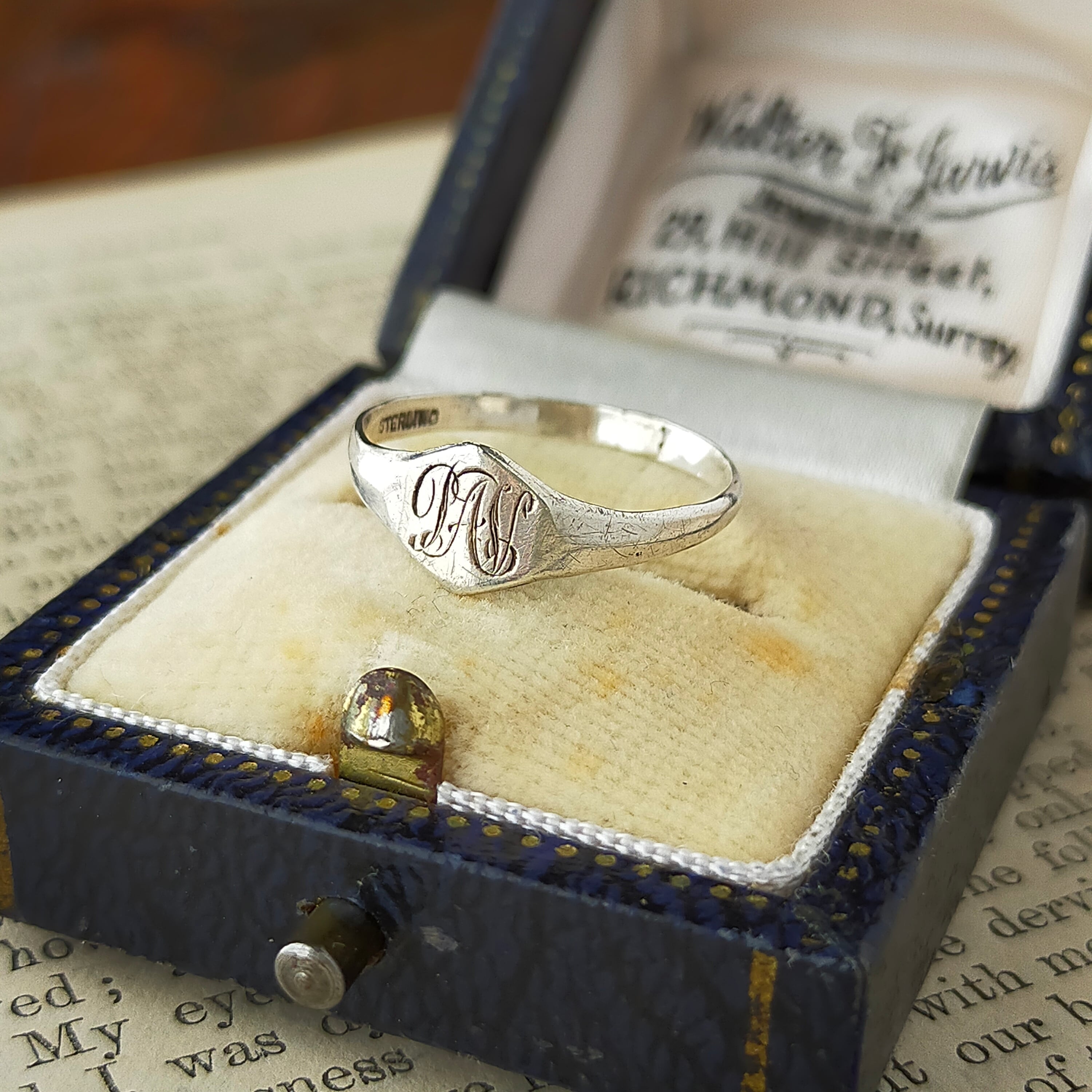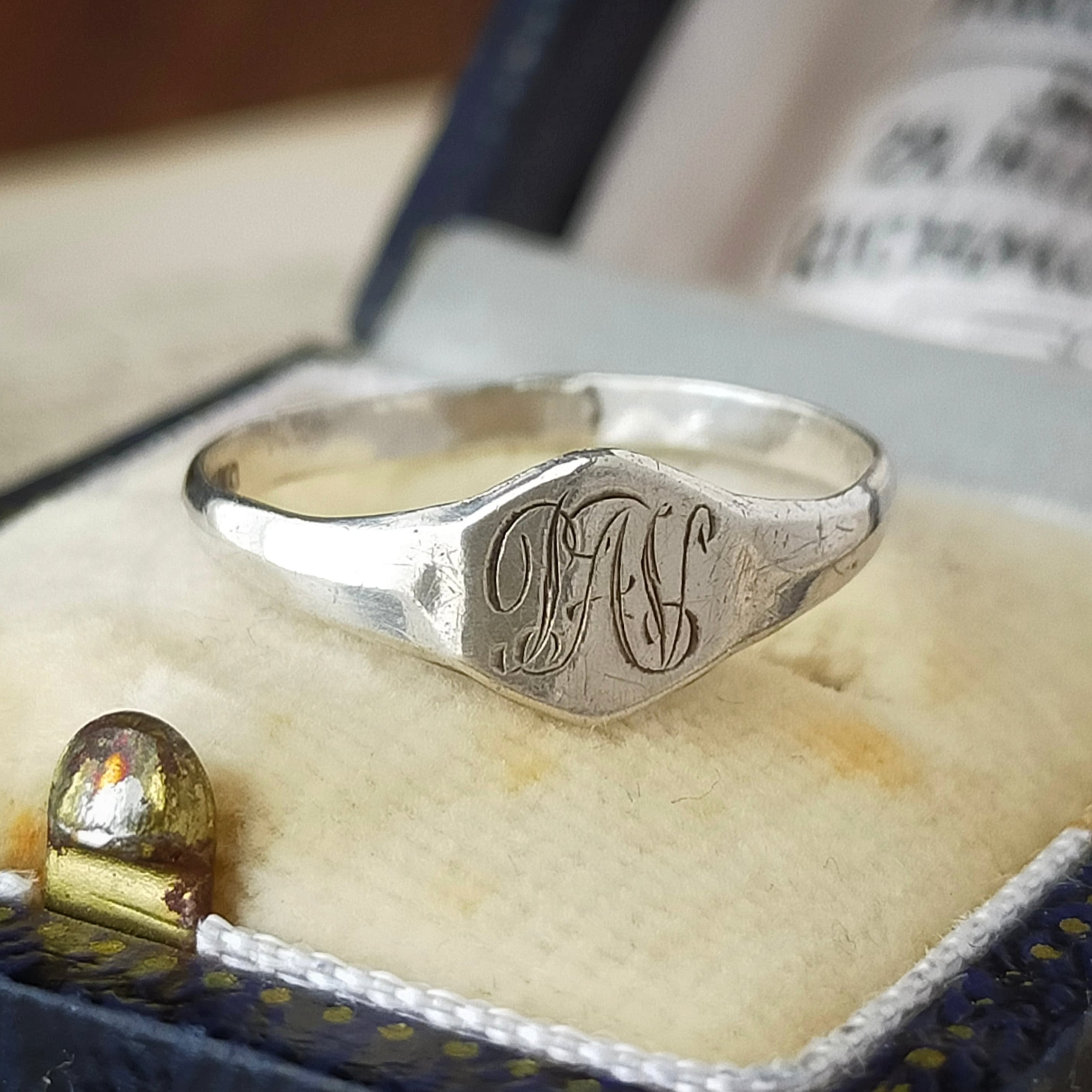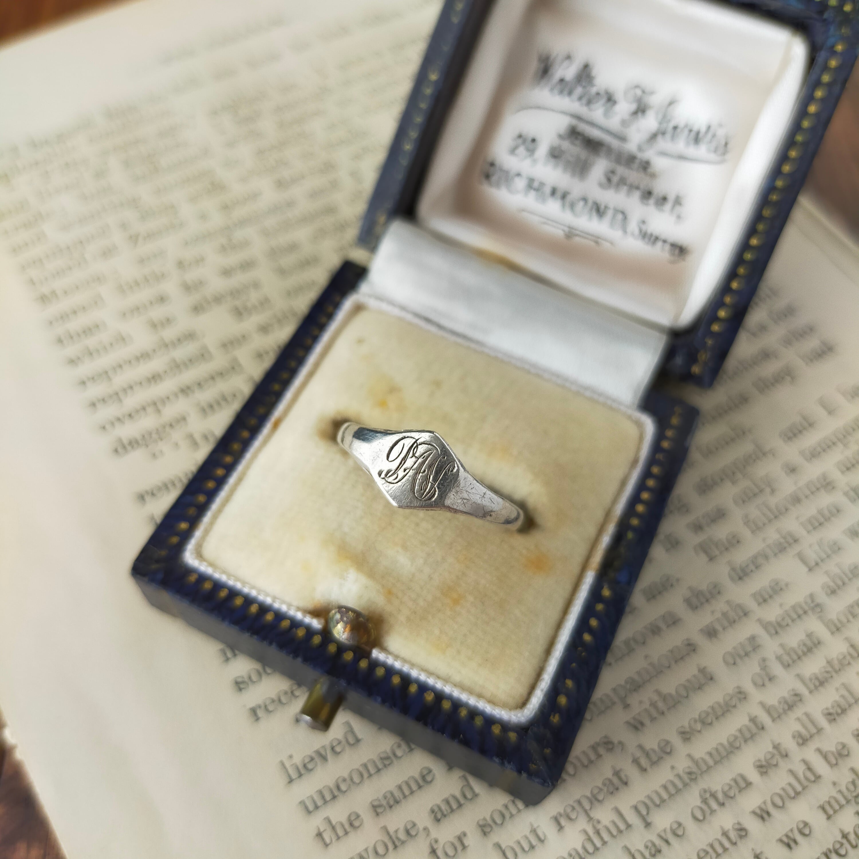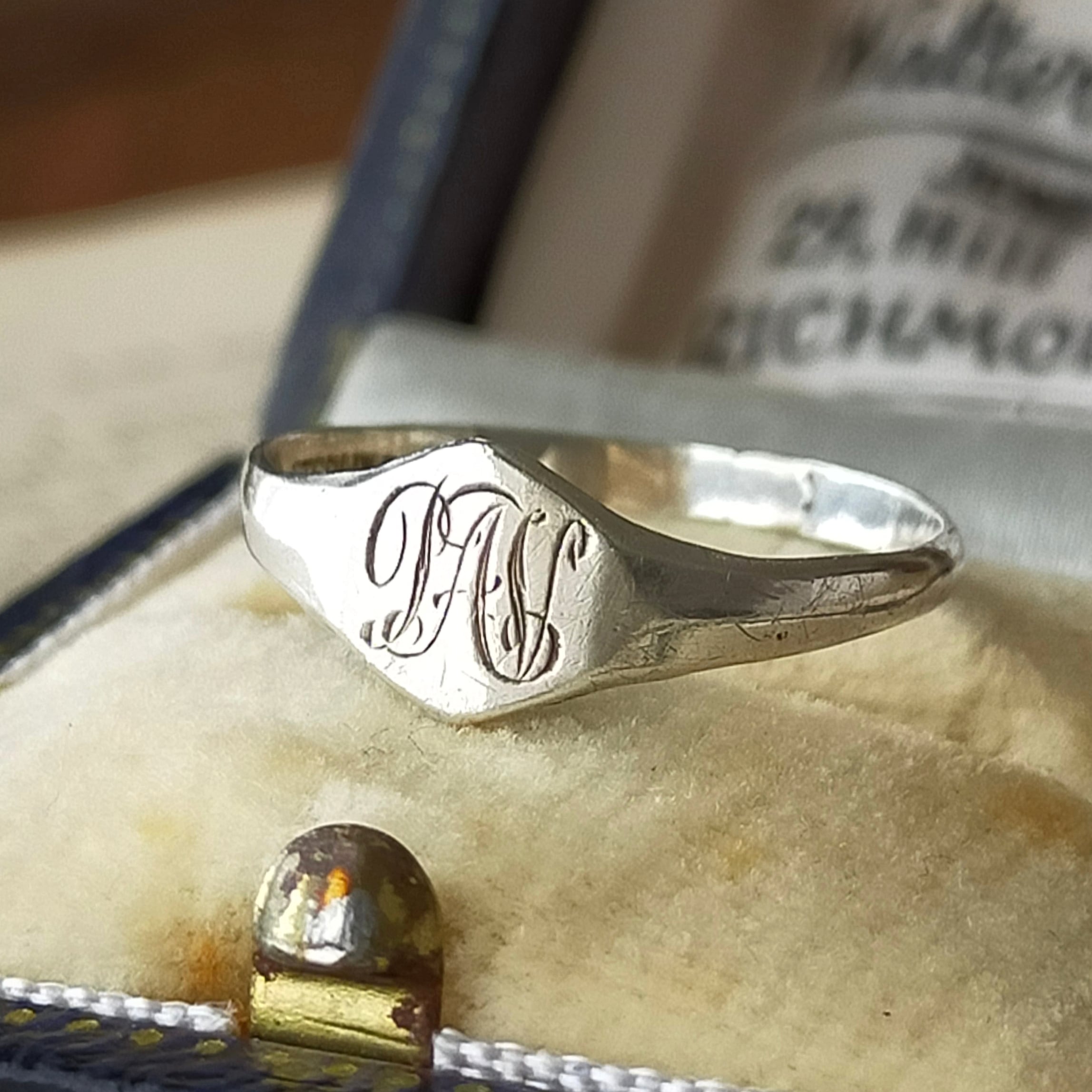 アンティーク STERLING シルバー シグネットリング イニシャル ヘキサゴン