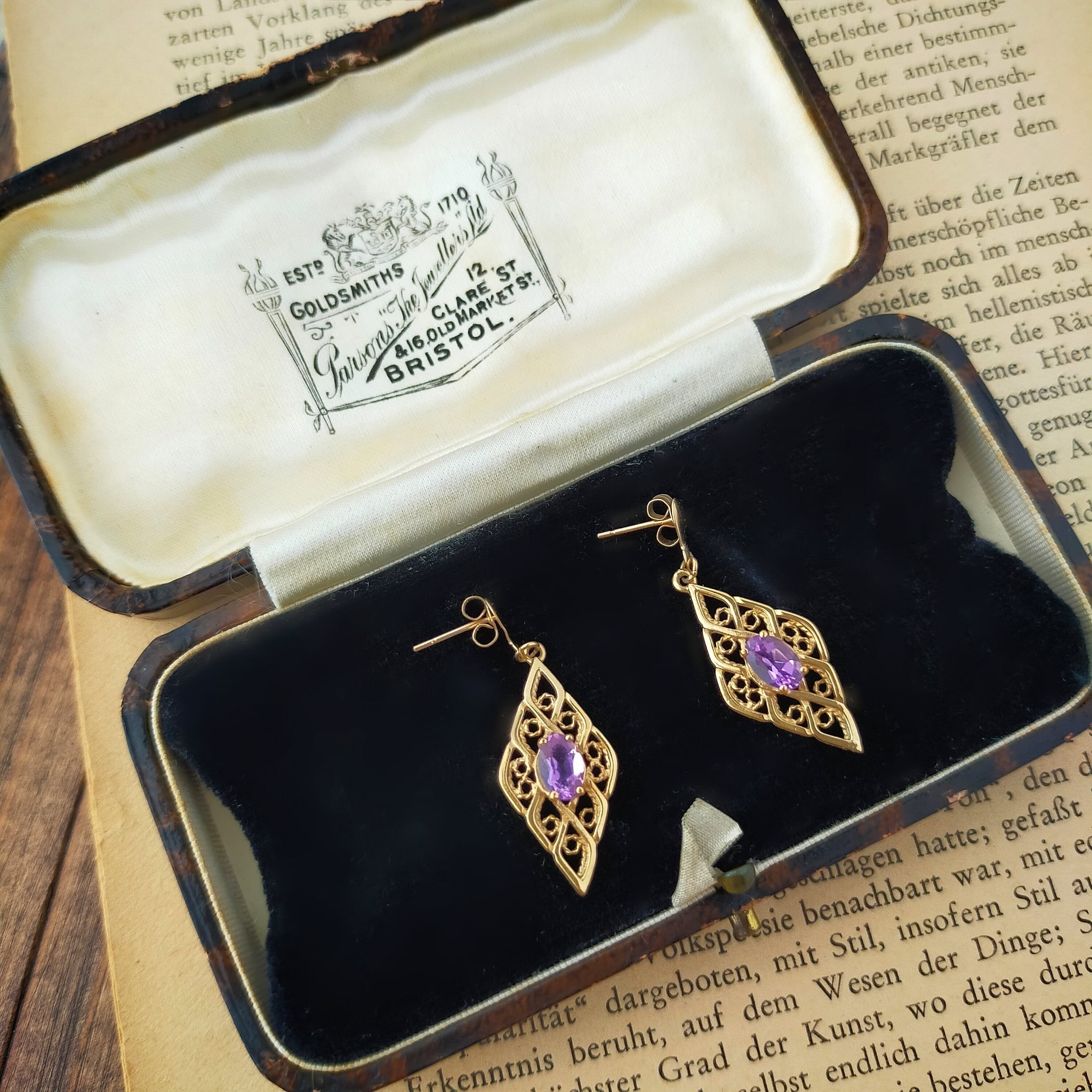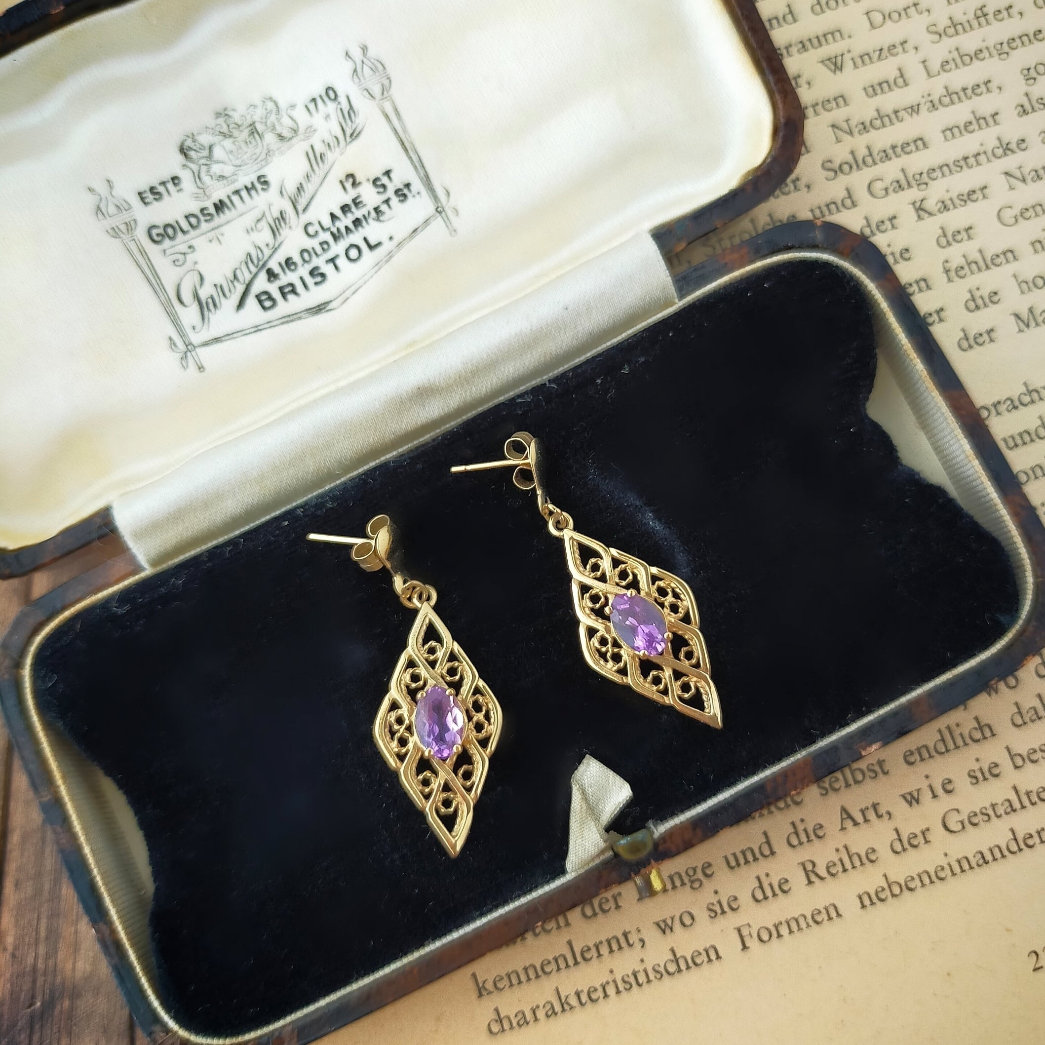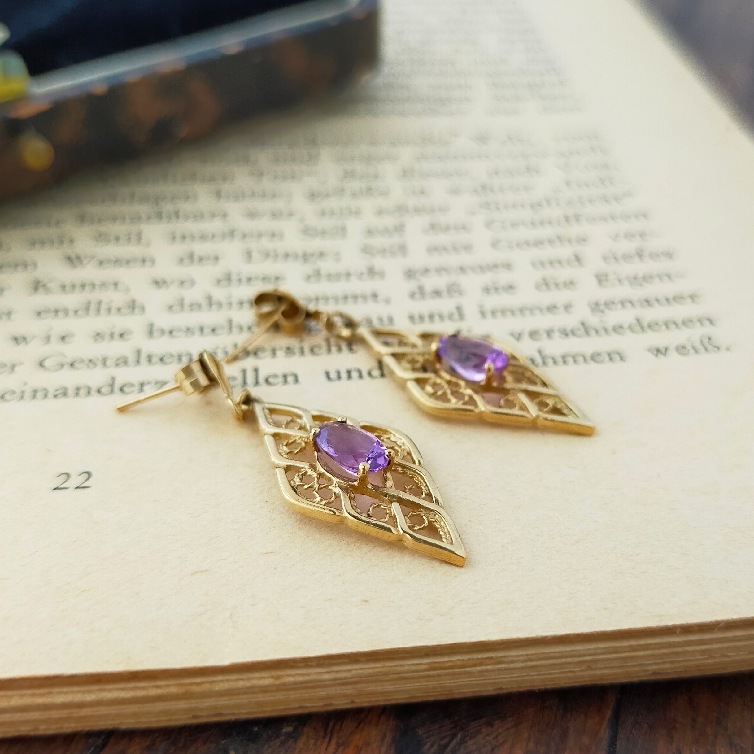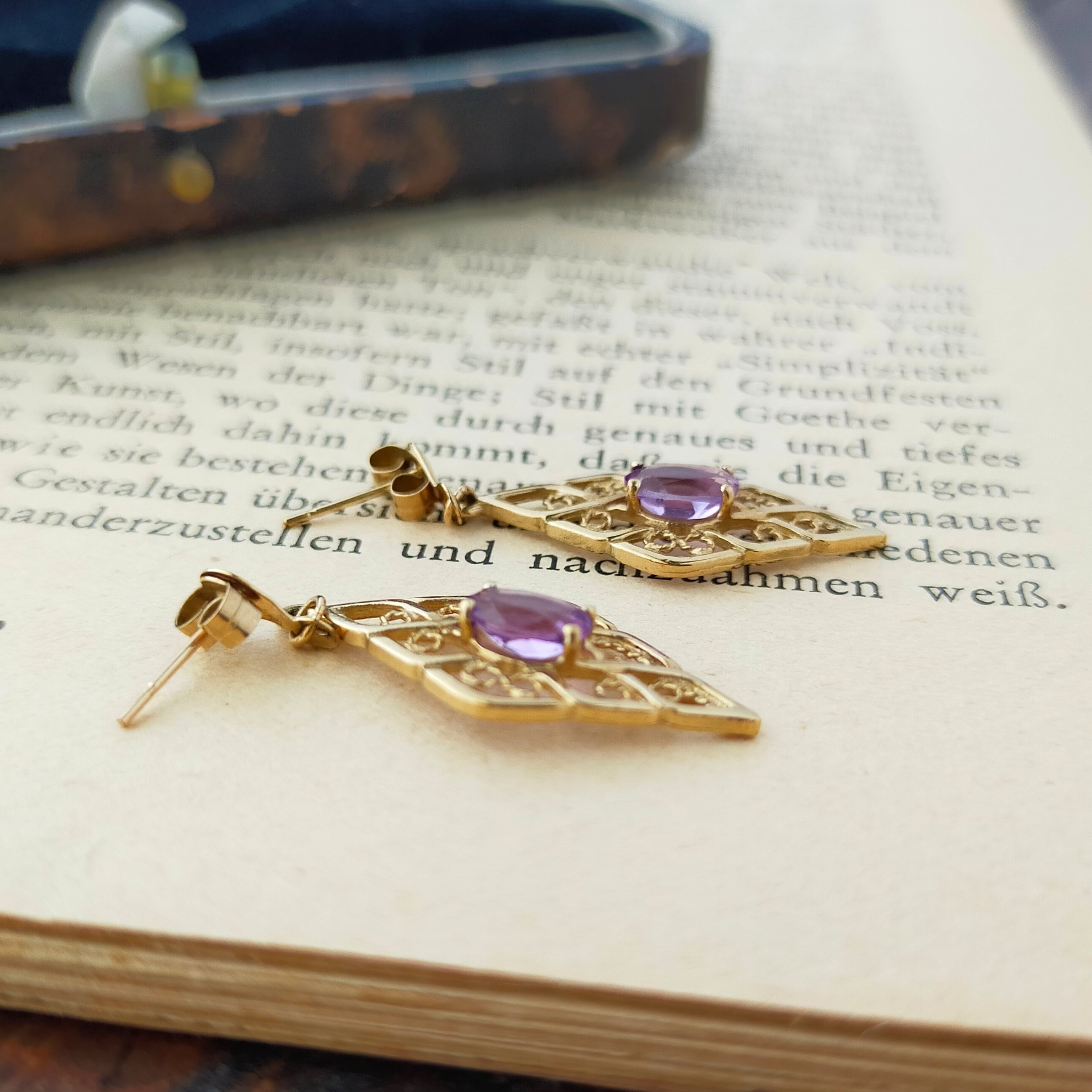 ヴィンテージ 9ct ゴールド アメジスト ピアス フィリグリー