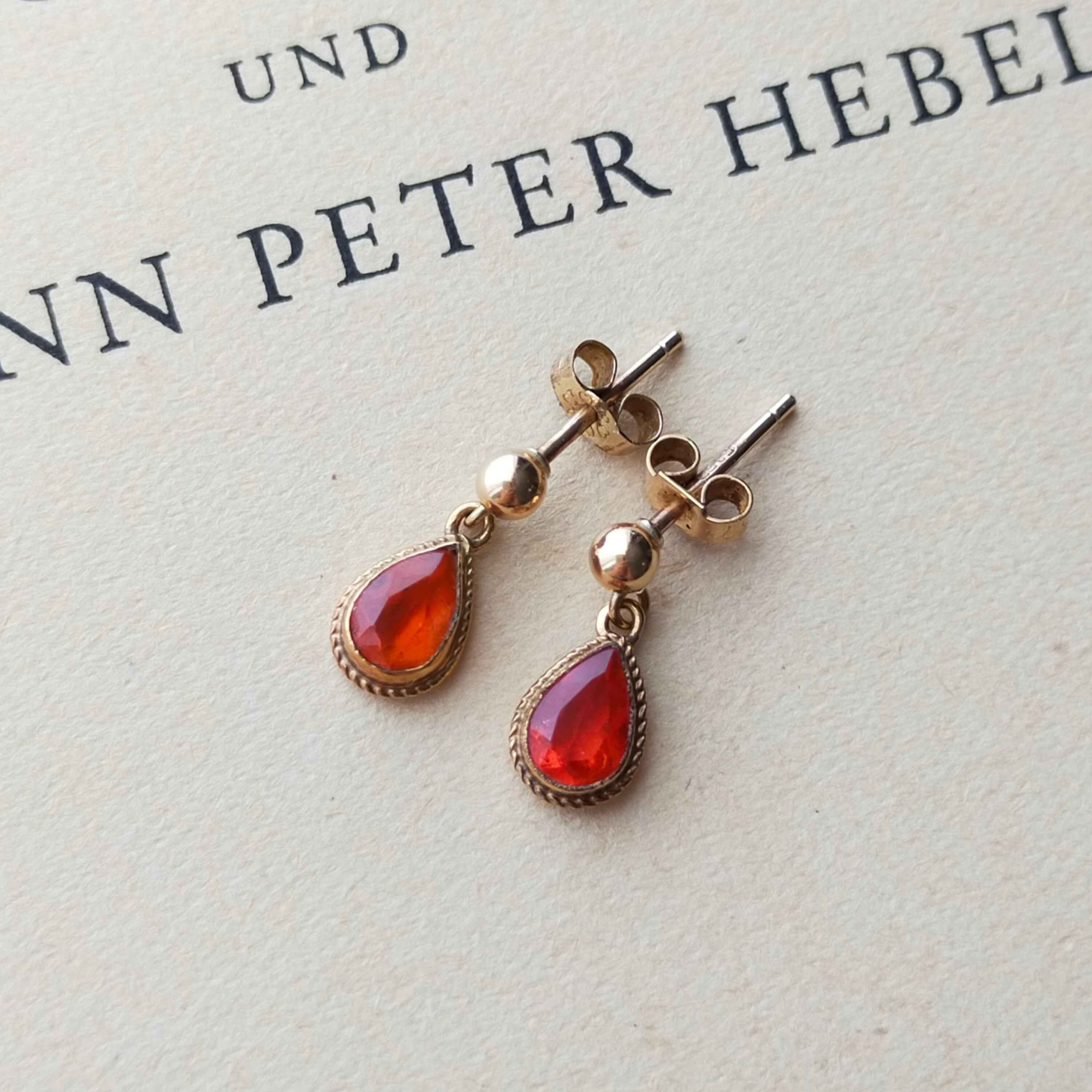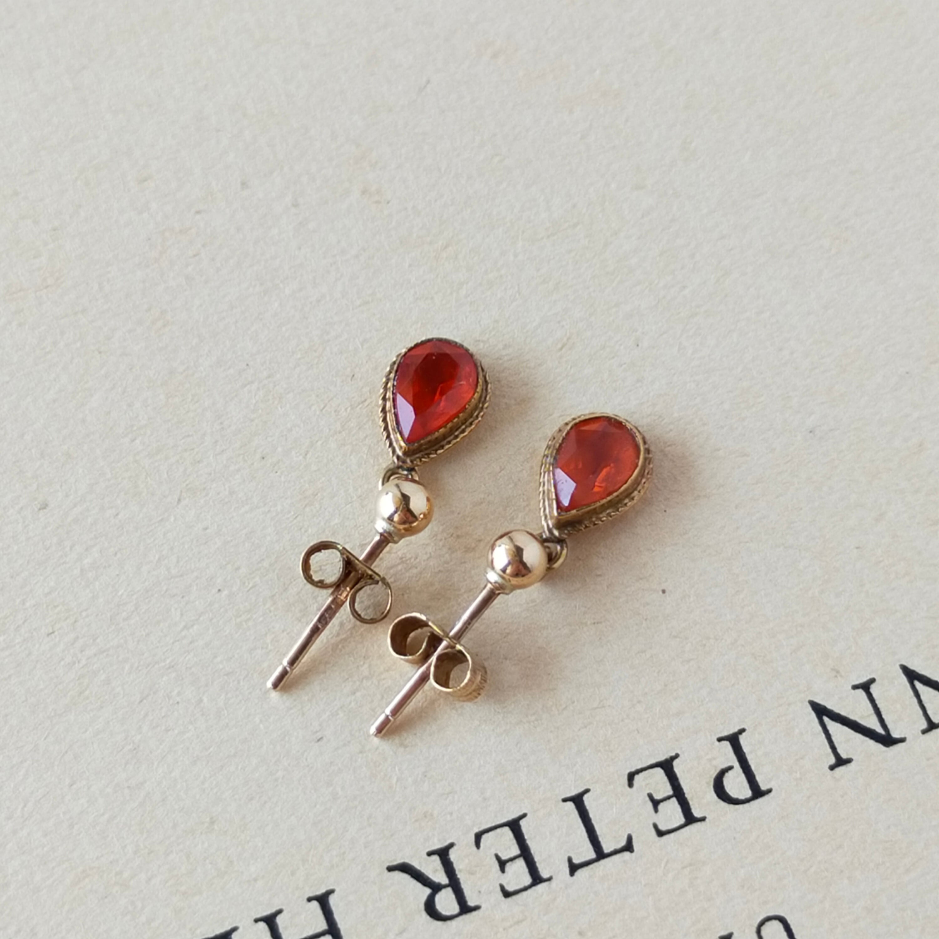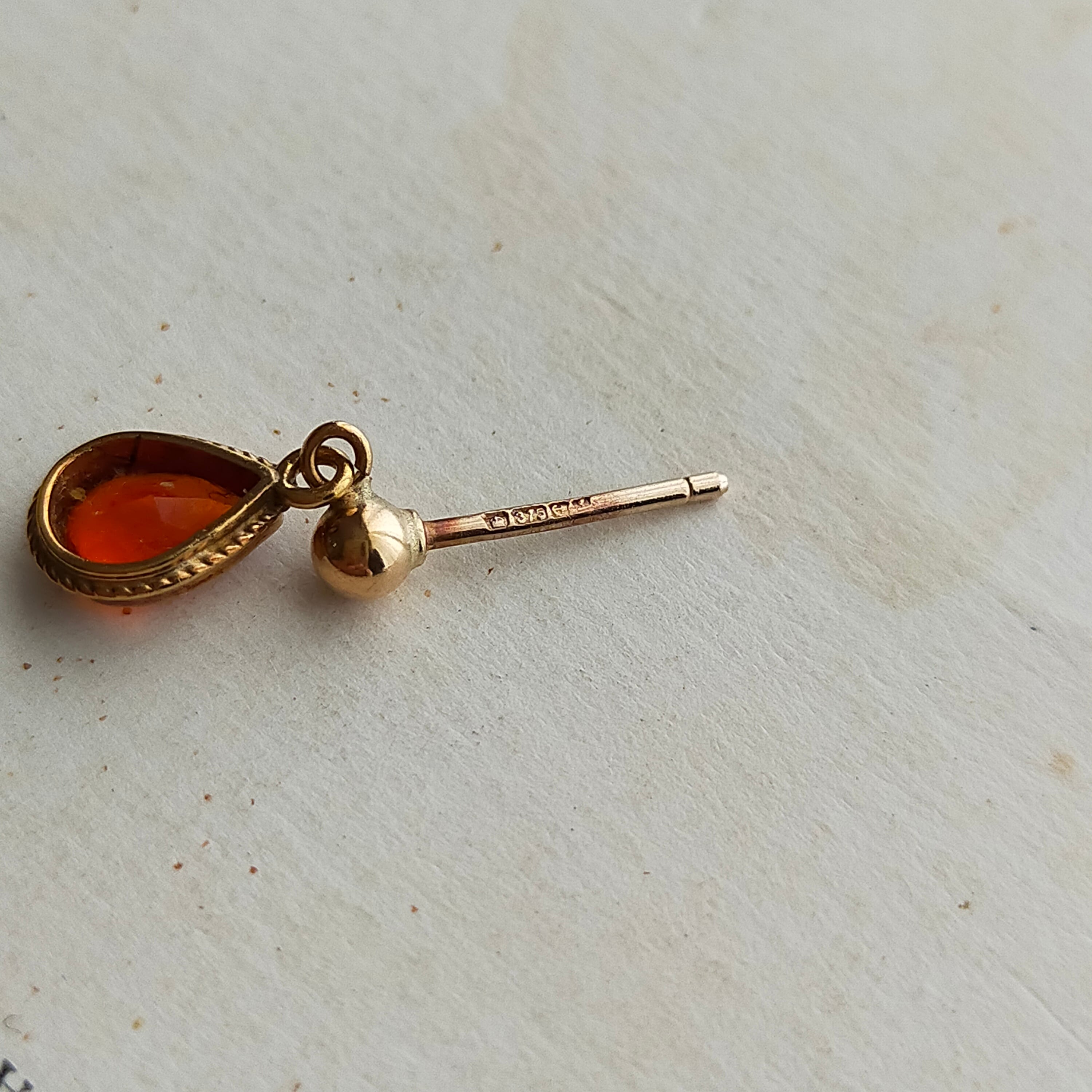 英国 1980年代 ヴィンテージ 9kゴールド ファイヤーオパール ピアス