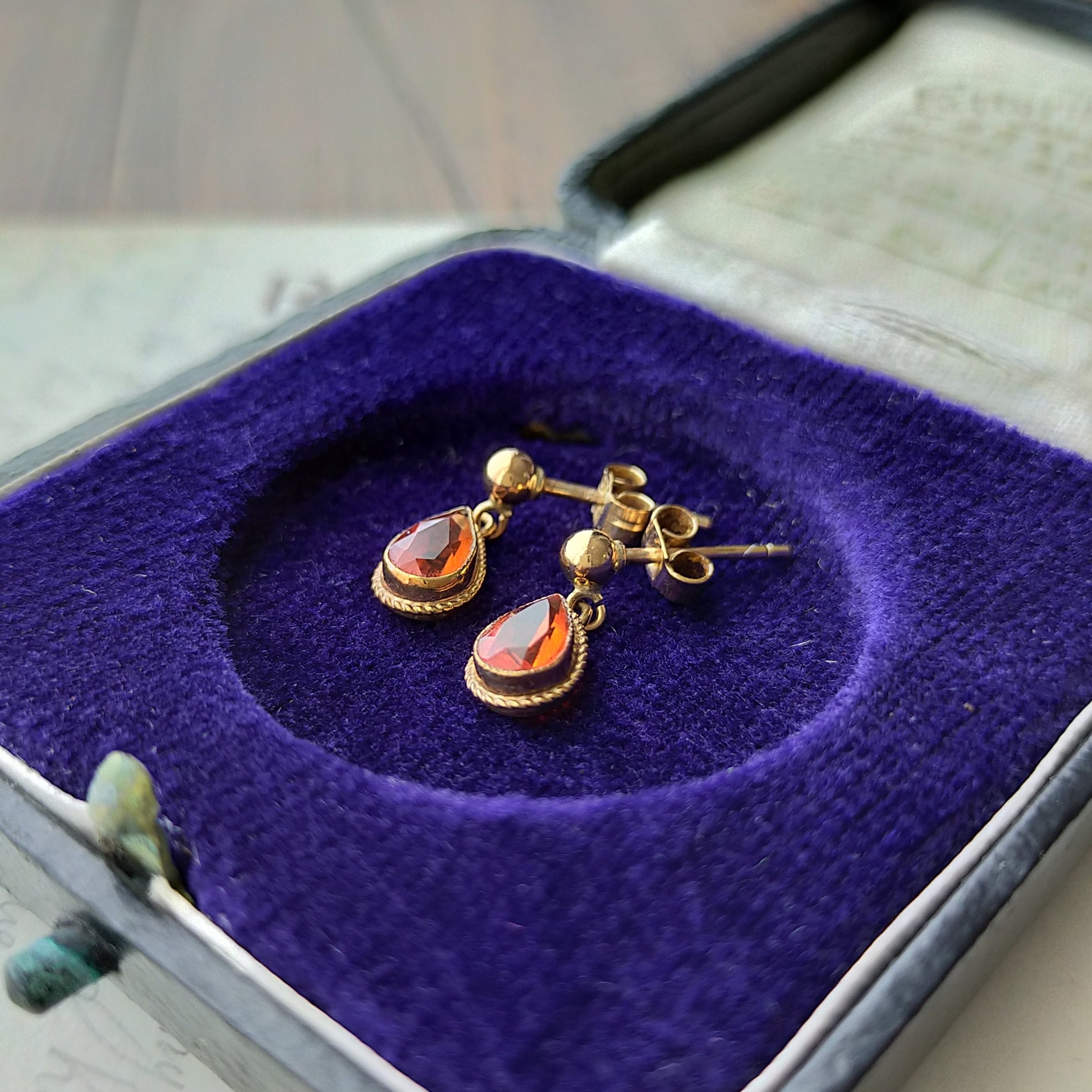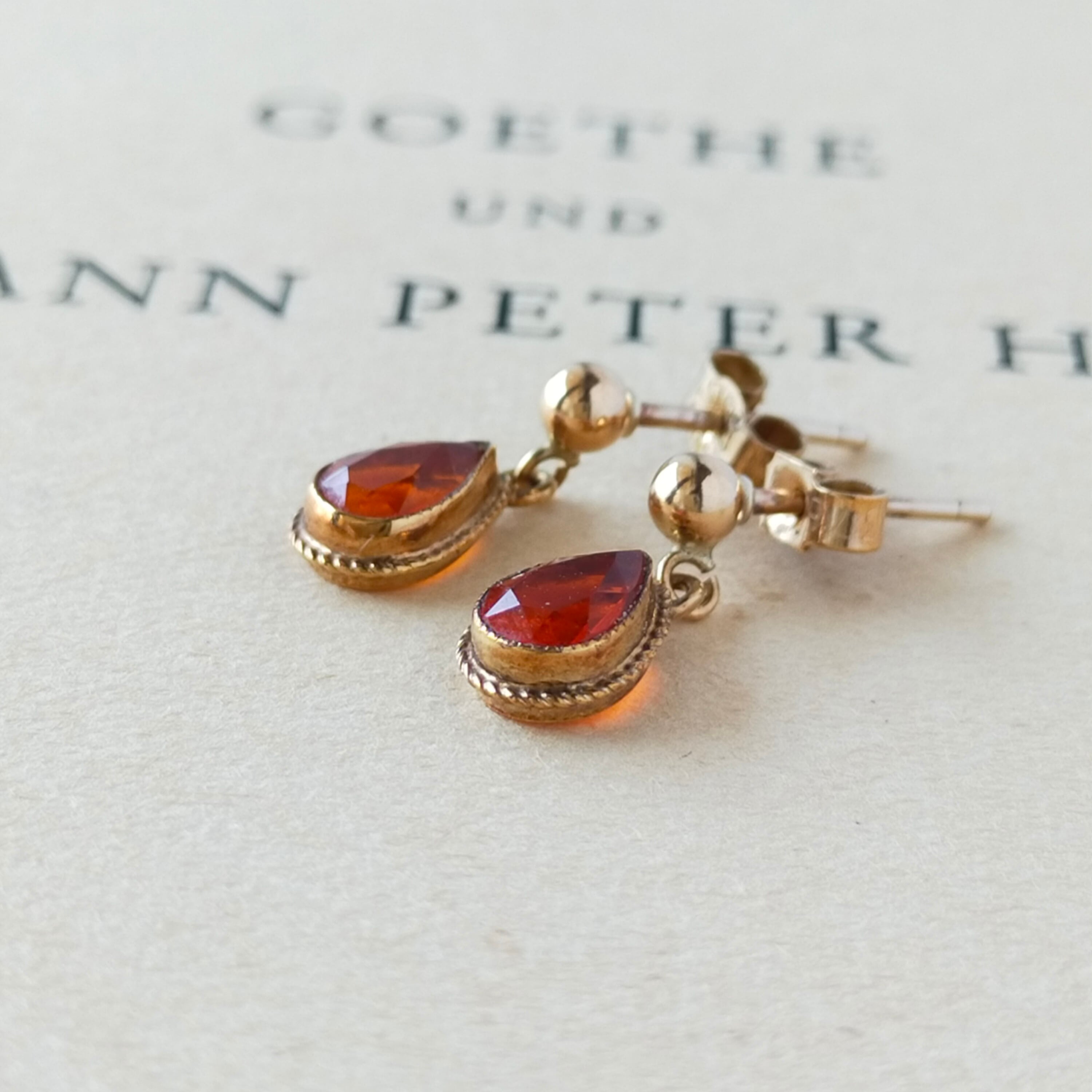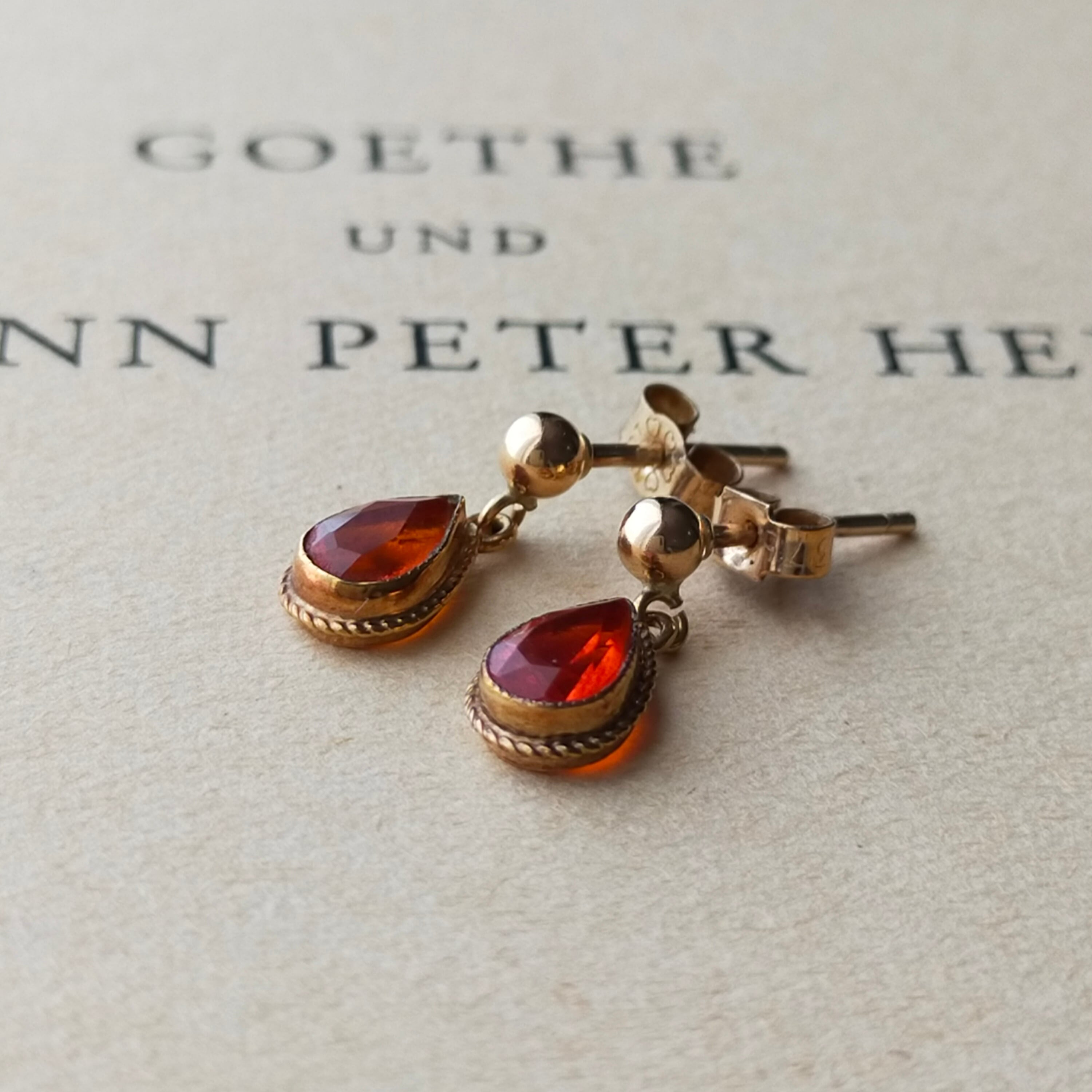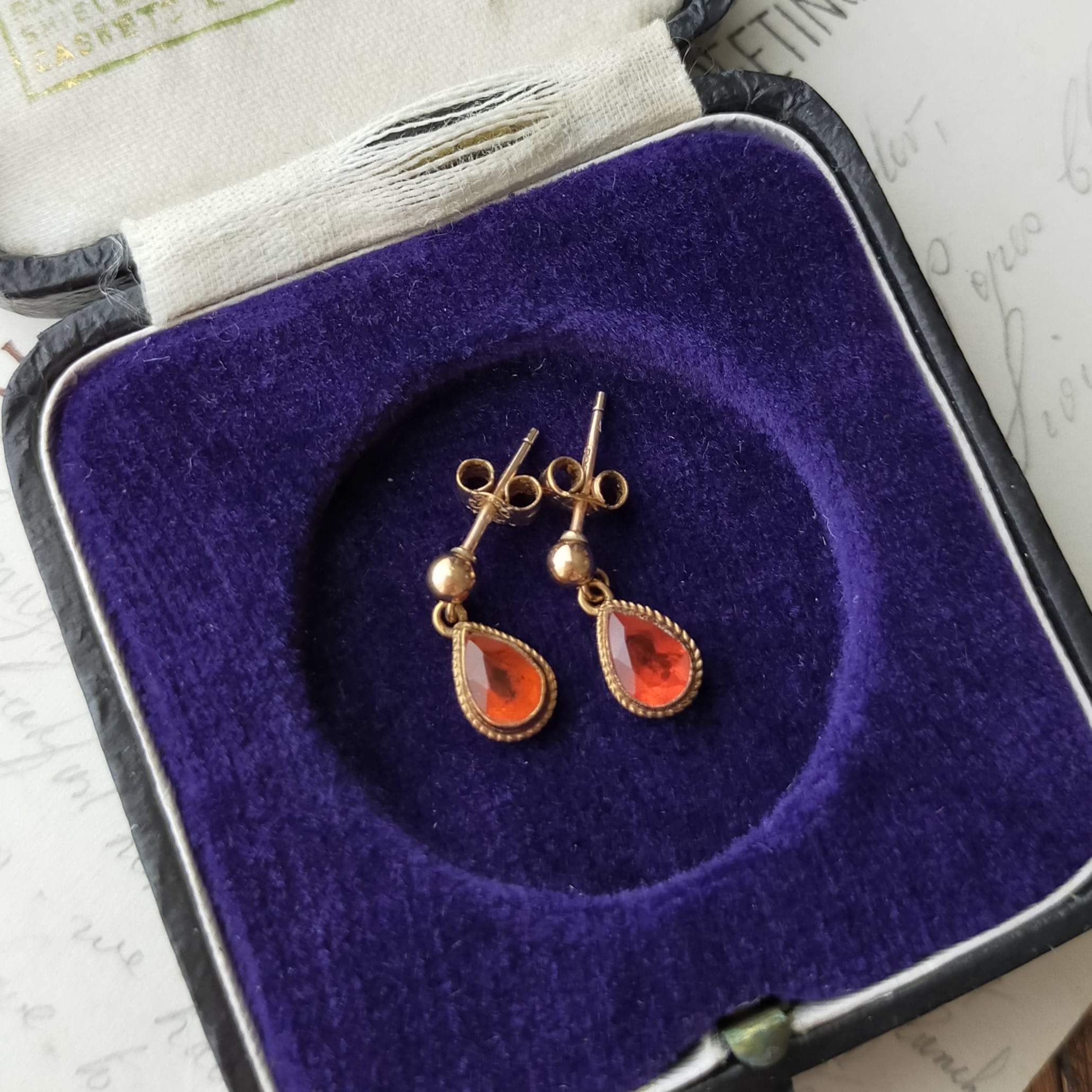 英国 1980年代 ヴィンテージ 9kゴールド ファイヤーオパール ピアス