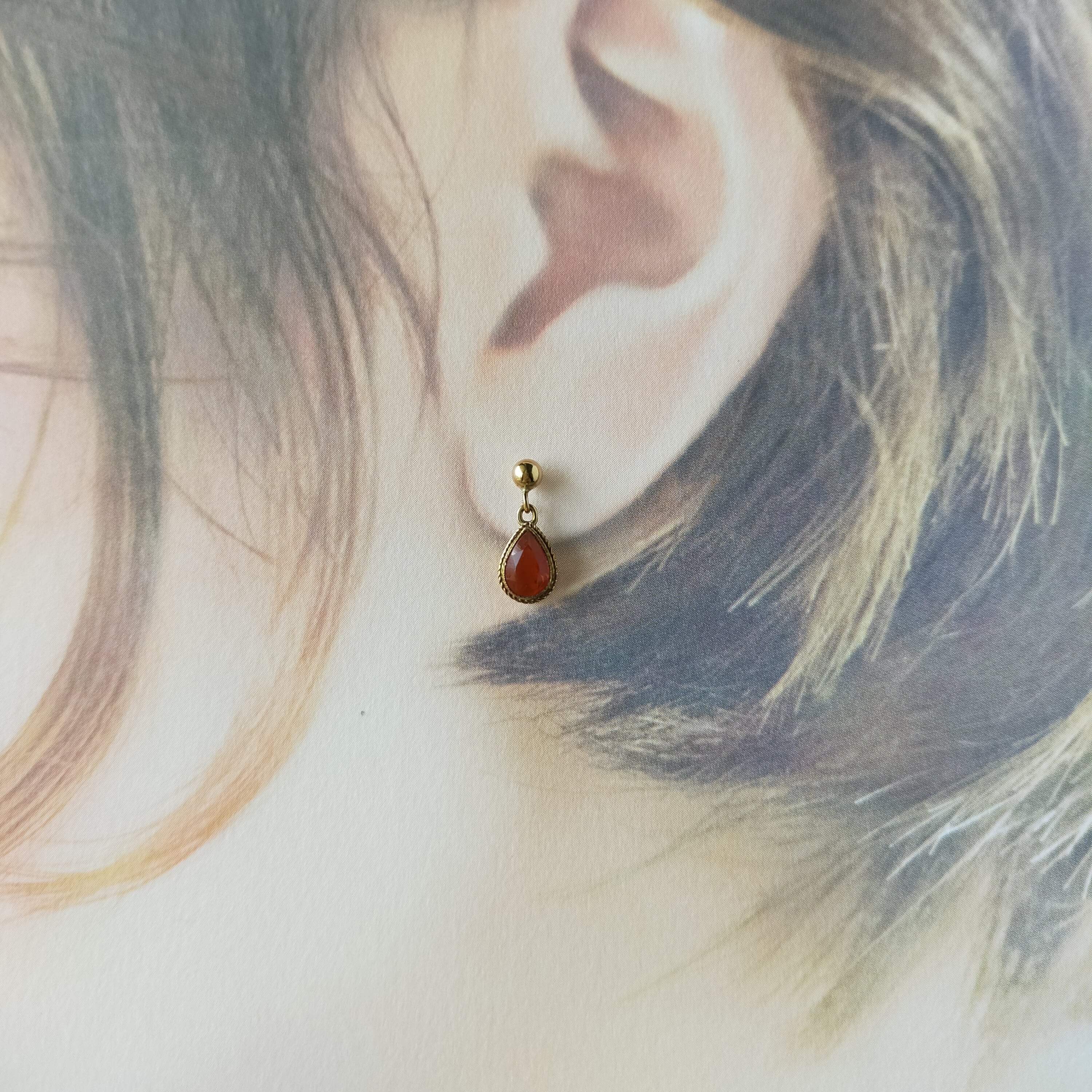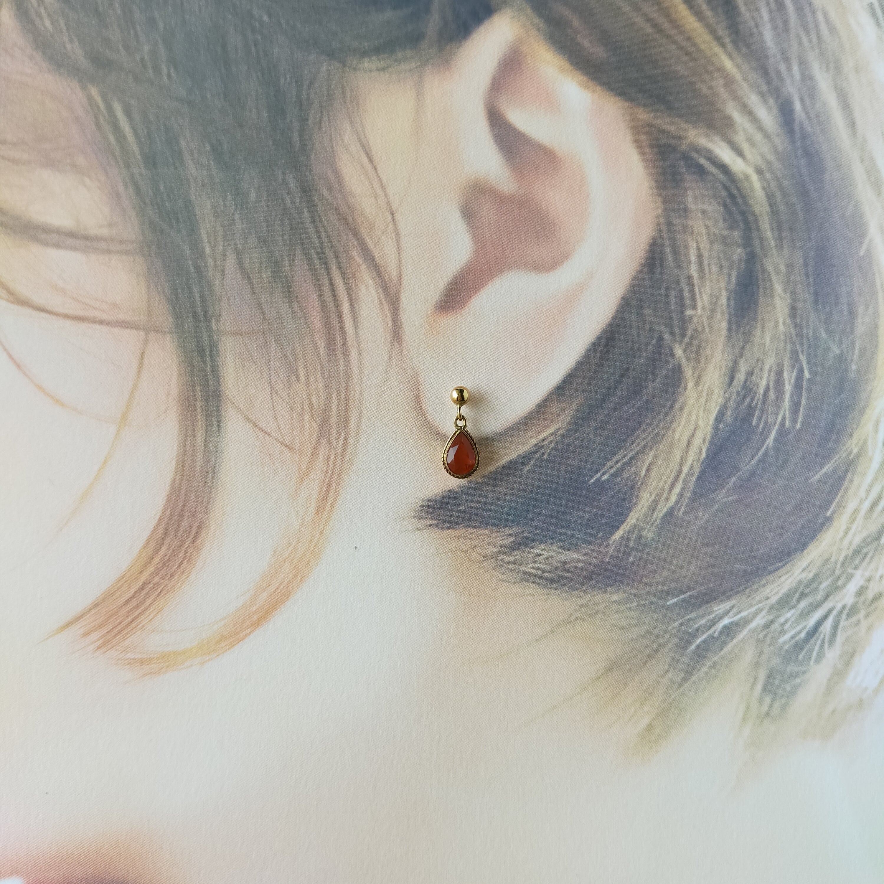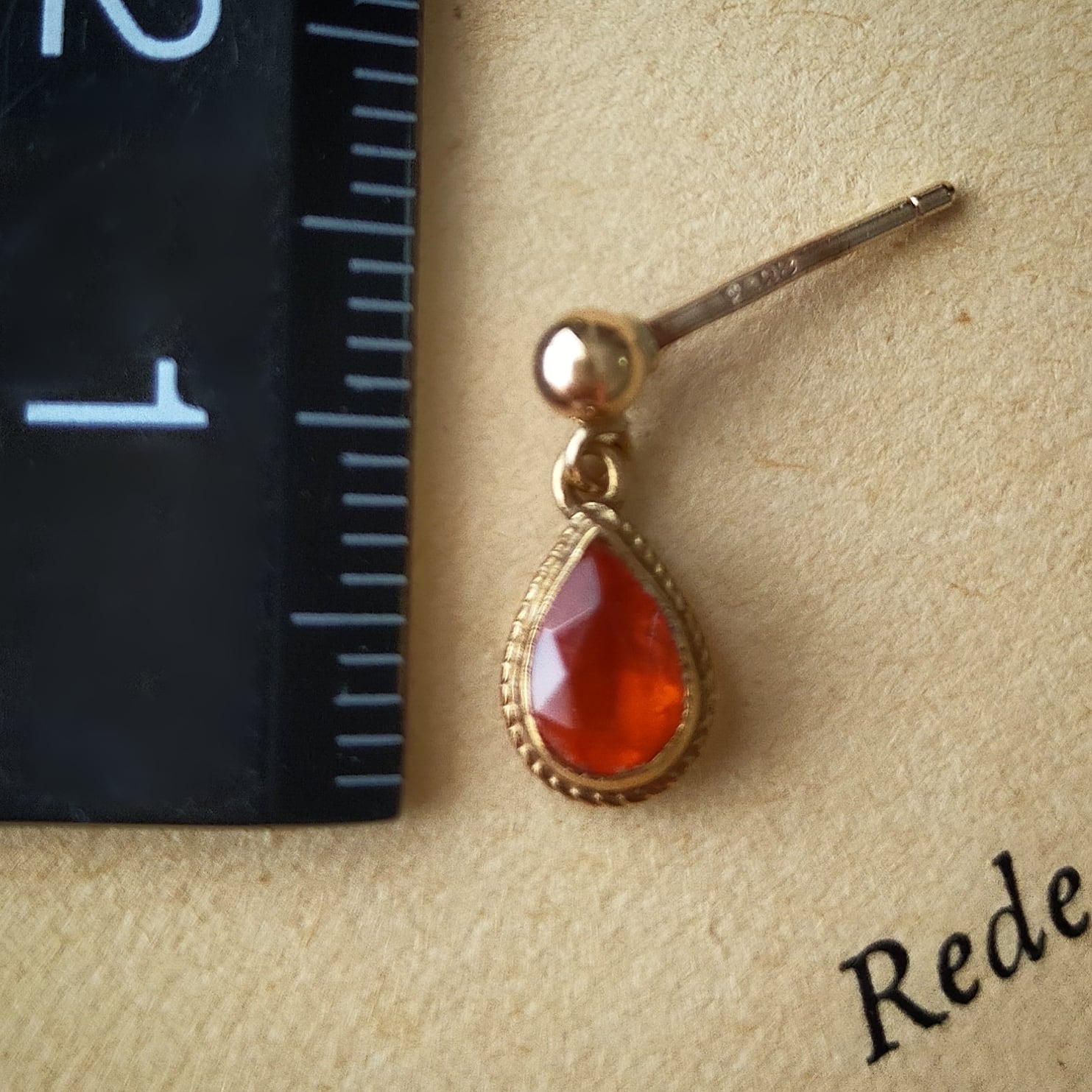 小ぶりながら、いきいきと輝くしずく型のファイヤーオパールが耳元を華やかに彩ります。