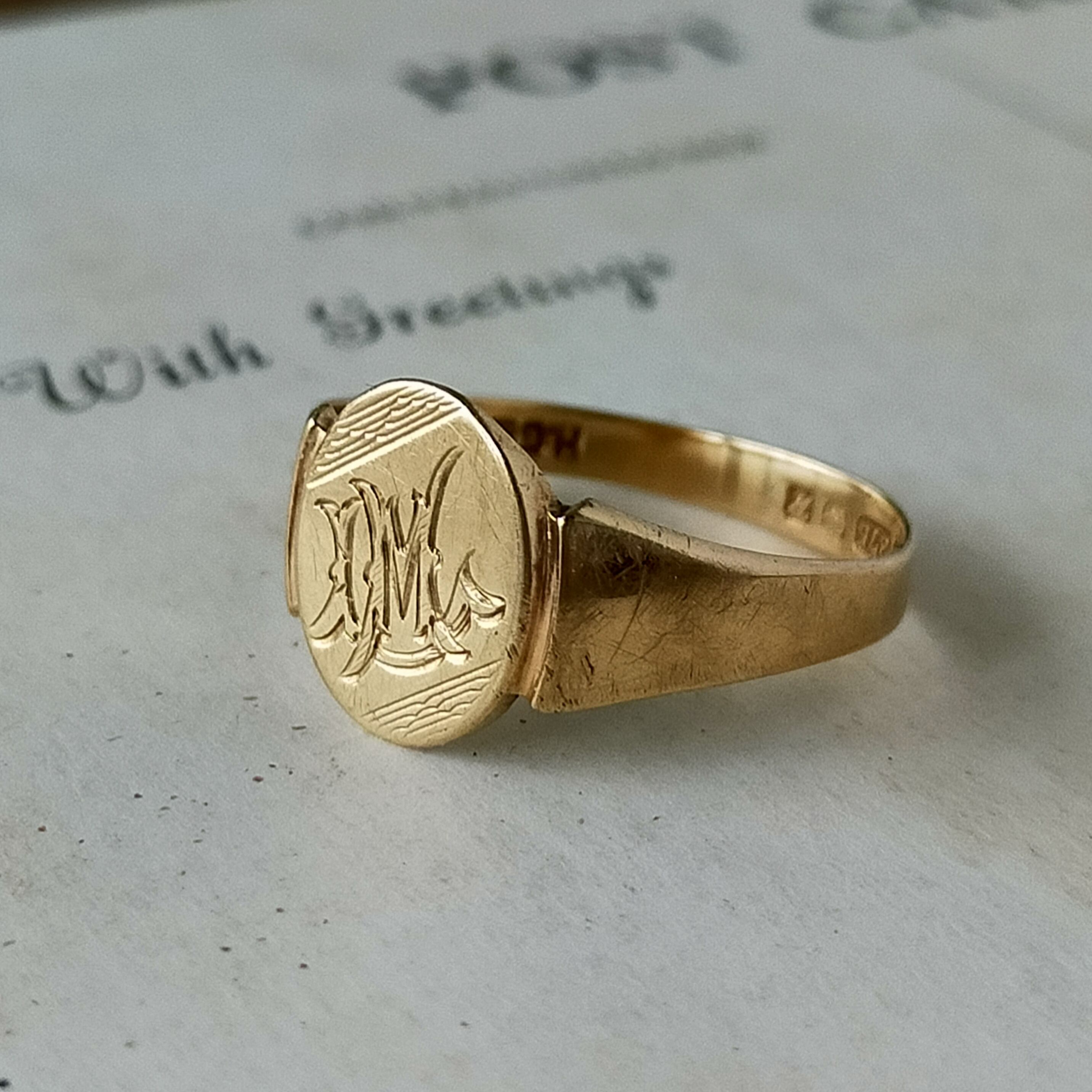 英国 1955年 9kゴールド モノグラム ML シグネットリング