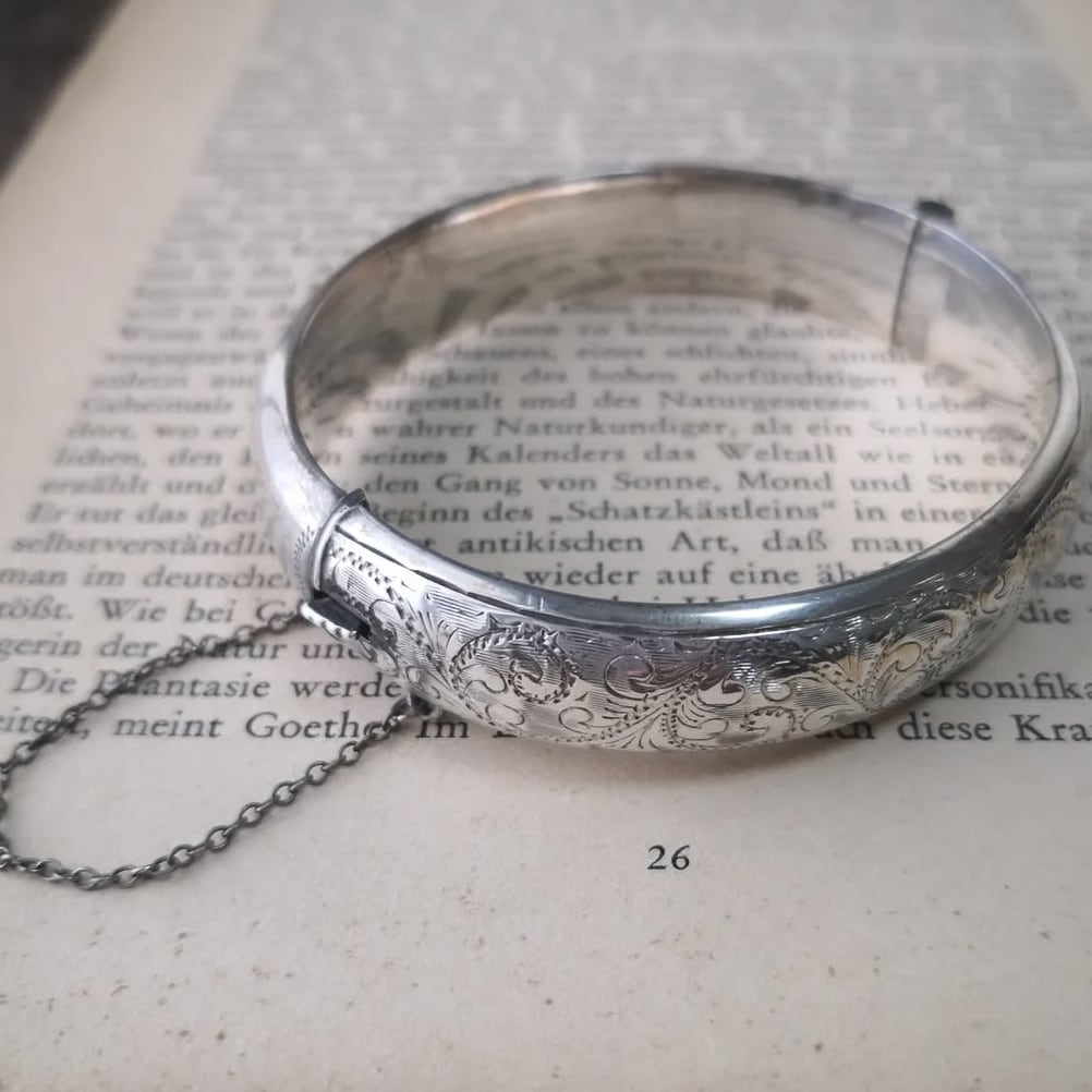 英国 1958年 ヴィンテージ スターリングシルバー 彫金バングル