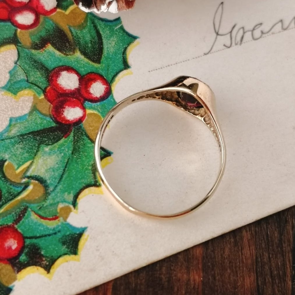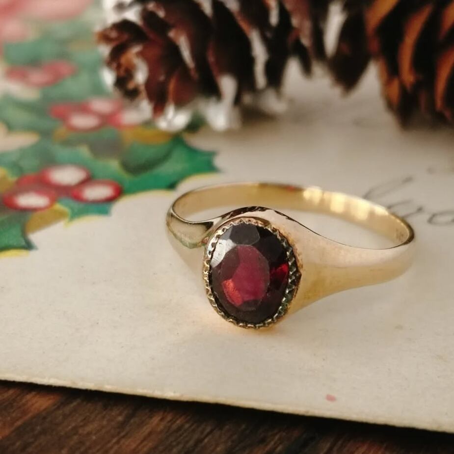 英国 1969年 ヴィンテージ 9kゴールド ガーネット シグネットリング