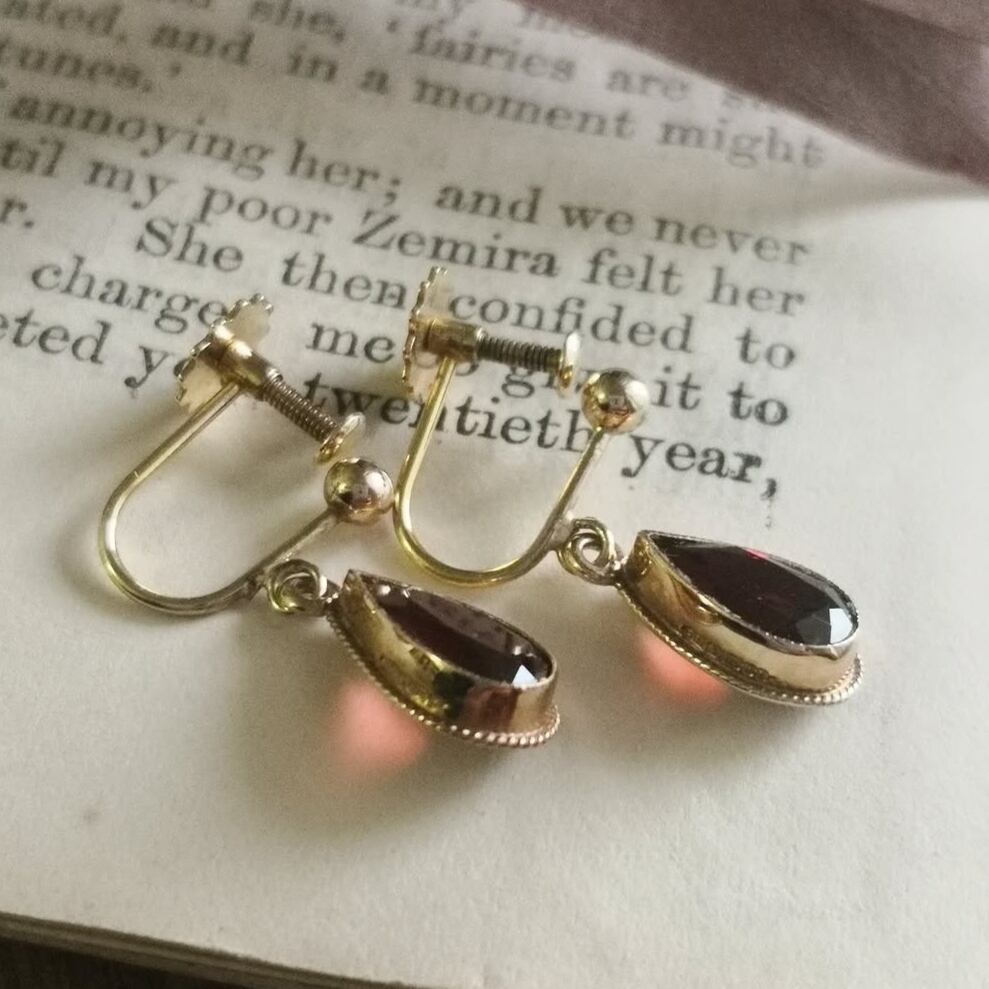 ヴィンテージ 9ct ゴールド ガーネット イヤリング