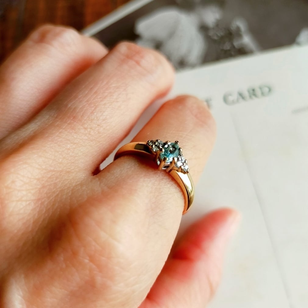 英国 ヴィンテージ 9kゴールド ブルートパーズ ダイヤモンド リング