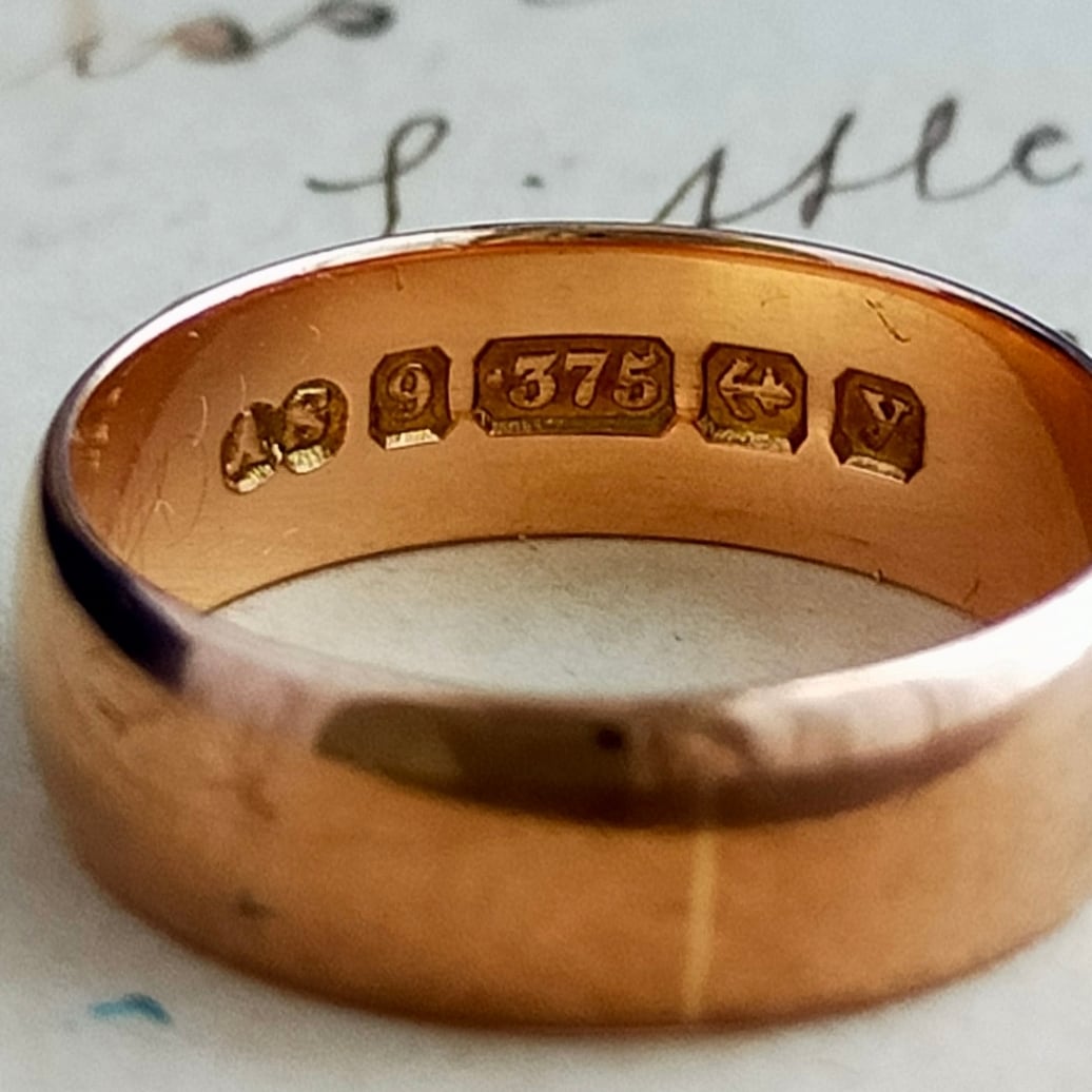 英国 1923年 アンティーク 9kゴールド バンドリング ローズゴールド バーミンガム ホールマーク
