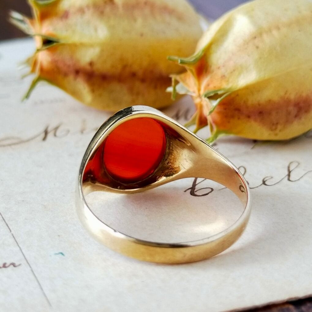英国 1967年 ヴィンテージ 9kゴールド カーネリアン シグネットリング バーミンガム